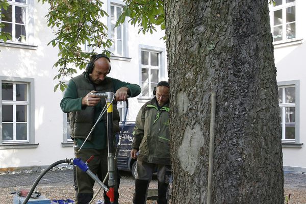 Baumstandorte mit verdichtetem oder schlecht durchlässigem Boden können wir mittels Druckluftlanze verbessern.Hierdurch erhalten die Wurzeln sofort besseren Gasaustausch und Sperrschichten können durchbrochen oder Staunässe behoben werden. Die Verfüllung mit leichtem Granulat sichert dauerhafte Durchlässigkeit.