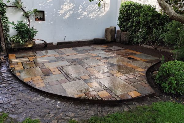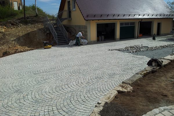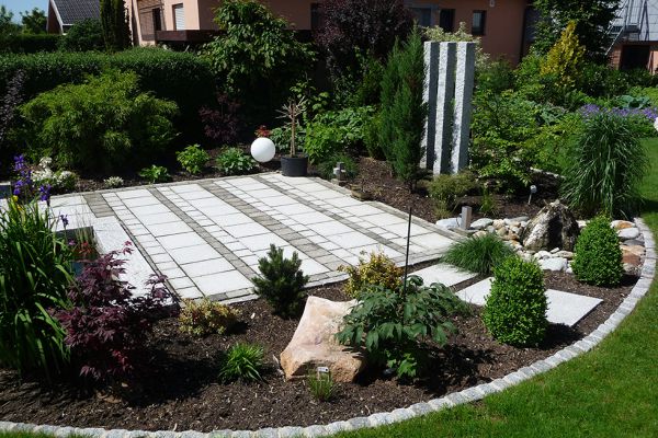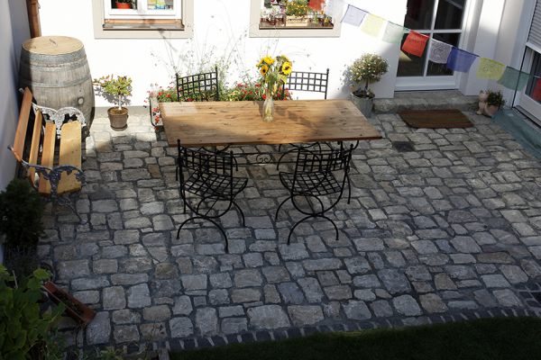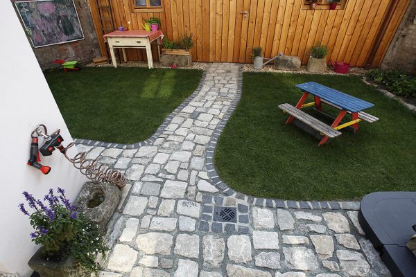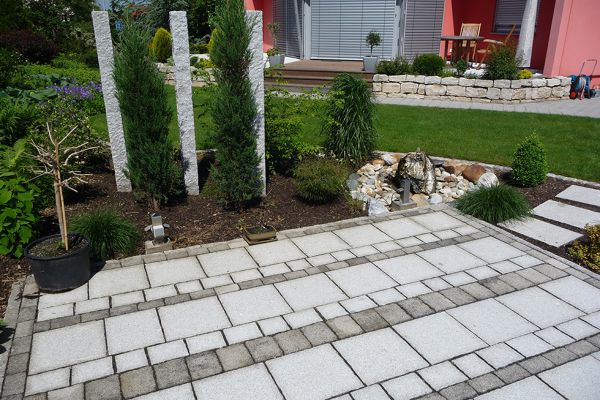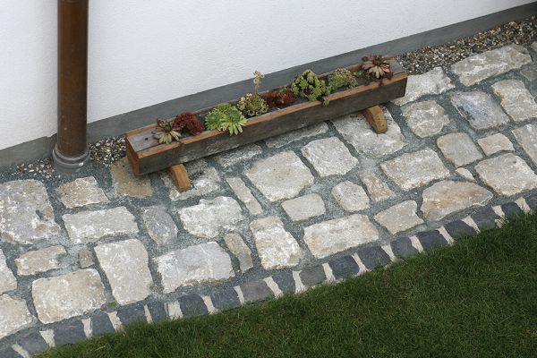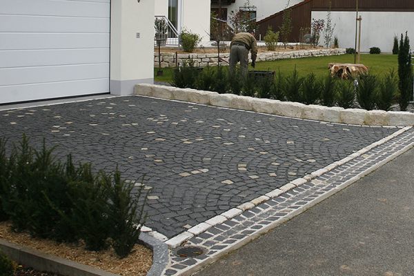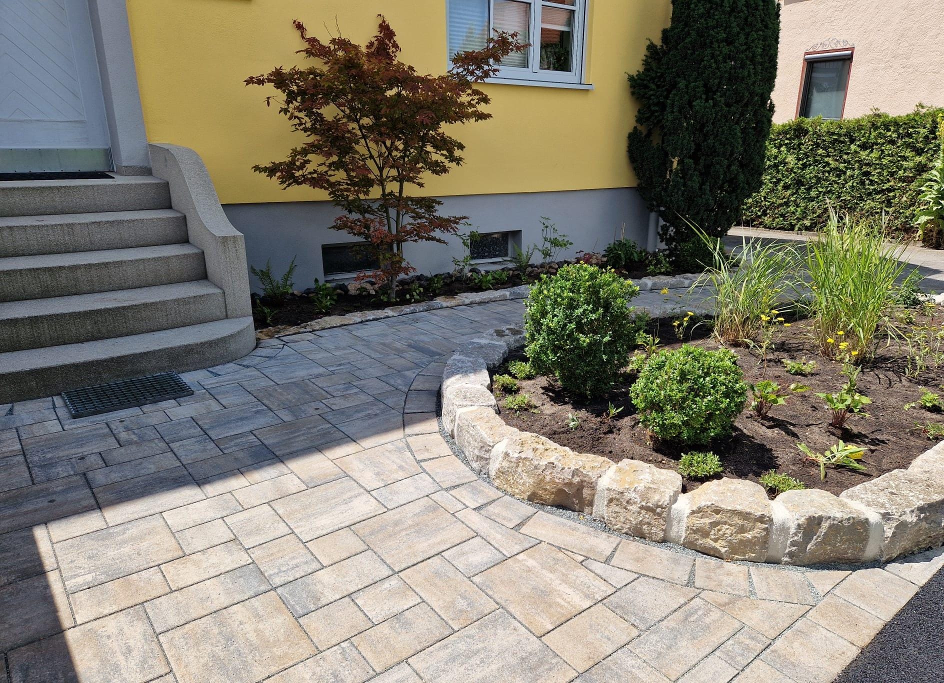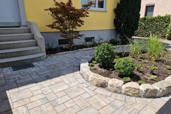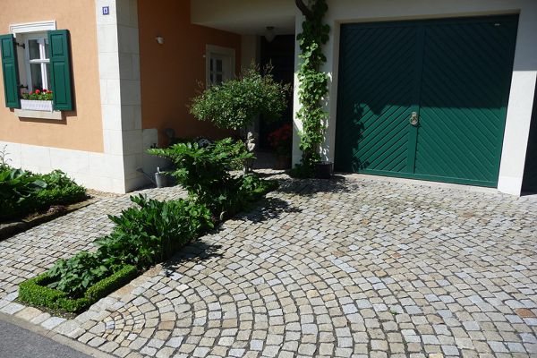 Fußwege verknüpfen diese Flächen mit Hauseingängen oder Stellplätzen, sowie Garagenzufahrten. Wählen sie zwischen naturnahen Belägen mit größeren oder begrünten Fugen, oder klassischen Pflasterflächen aus Beton- oder Naturstein.
